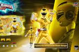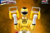 El traje incluye el característico casco, uniforme amarillo, mangas cortas, cinturón con funda y botas, combinando materiales de tela y plástico que maximizan el realismo. Esta figura viene equipada con sus emblemáticos Turbo Star Chargers, además del Auto Blaster que puede transformarse en Modo Turbo, y la Turbo Blade, proporcionando opciones de combate icónicas. Además, trae cinco pares de manos intercambiables, ideales para una exhibición versátil y adaptada al gusto del coleccionista.