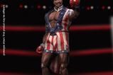 Con una escultura facial seria y una complexión atlética perfectamente esculpida, la figura luce el inconfundible atuendo de Apollo: pantalones cortos con estrellas y rayas, calcetines a rayas y zapatillas altas. Además, incluye una cabeza alternativa con expresión sonriente, un chaleco plateado con estrellas, seis manos intercambiables para posturas dinámicas, una base de ring de boxeo y un taburete para recrear escenas completas del combate.
