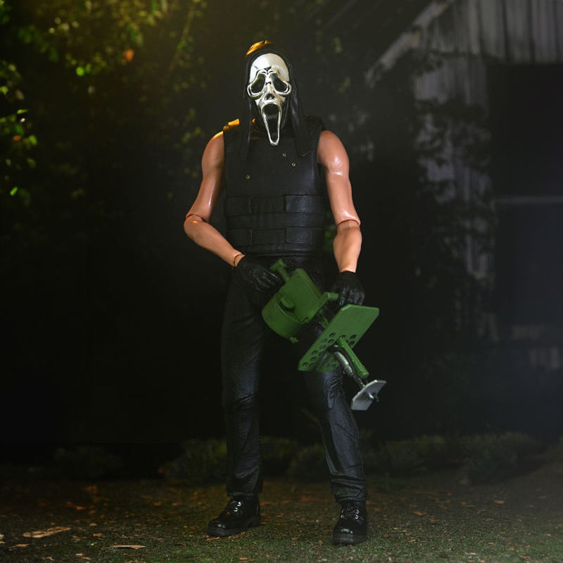 Déjate atrapar por el terror con la figura Ultimate Ghost Face Inferno de la película "Scream". Esta figura articulada, con una altura aproximada de 18 cm, te sumerge en el escalofriante universo de la famosa saga.