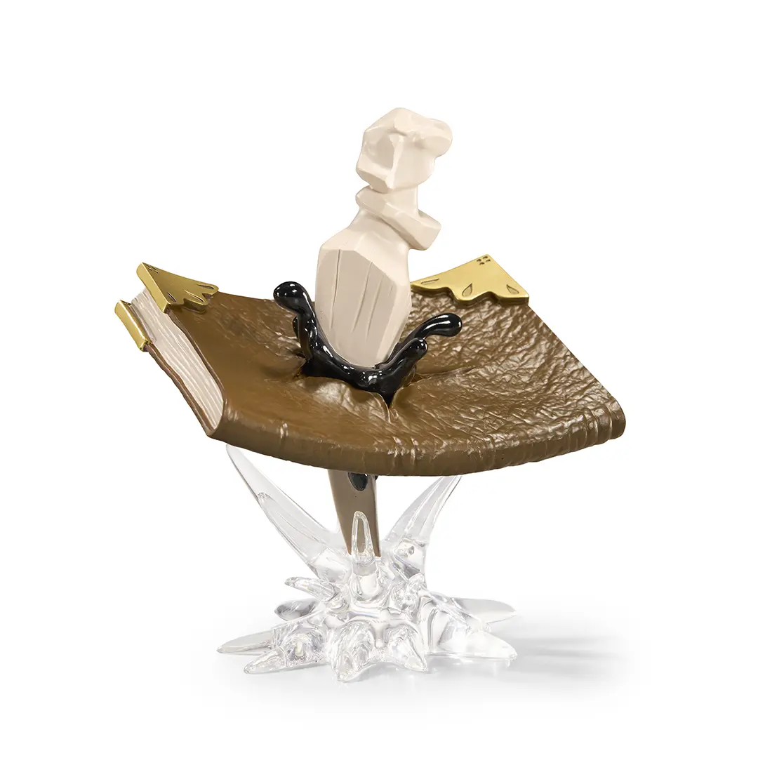 Revive la intensidad de Harry Potter y la Cámara Secreta con la figura Prop-Ups - Diario de Tom Riddle & Colmillo de Basilisco. Esta impactante pieza captura el momento en que el diario horrocrux es destruido, con un diseño detallado que muestra su superficie envejecida y la tinta negra escurriendo como si cobrara vida tras el impacto del colmillo.