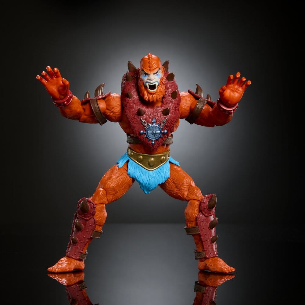 La figura Beast Man Masters of the Universe impone presencia desde el primer vistazo: naranja intenso, armadura con pinchos y una expresión salvaje que parece salida de una estantería ochentera. Esta figura de acción Beast Man 18 cm recupera el carácter más reconocible del villano clásico con una lectura actual, pensada tanto para exposición como para colección personal.