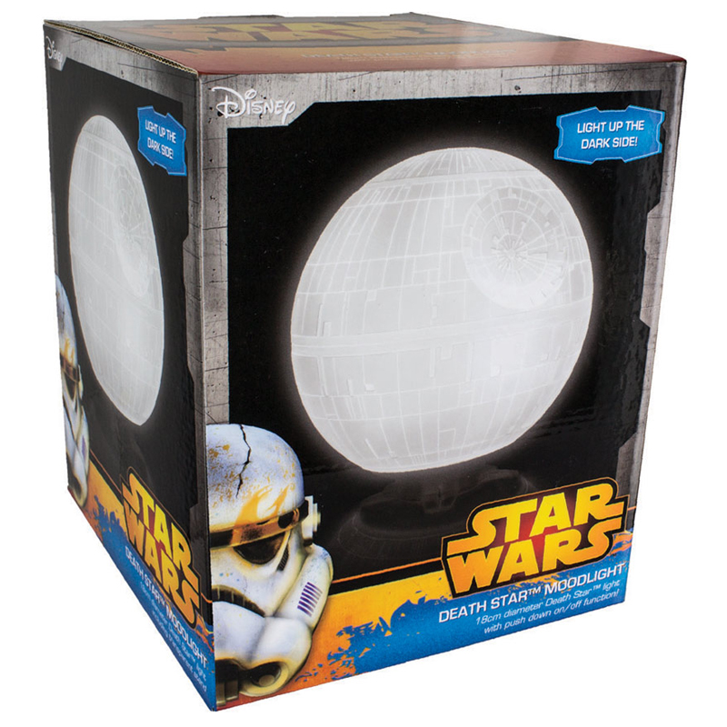 Decora tu rincón favorito con esta lámpara con la forma de la estación espacial de la Estrella de la Muerte basada en Star Wars. Esta lámpara tiene un diámetro aproximado de 18 cm. Todo un regalo para los amantes del universo creado por George Lucas. Conexión USB. Producto oficial Star Wars Mood Light Death Star realizado por la firma Paladone Products.