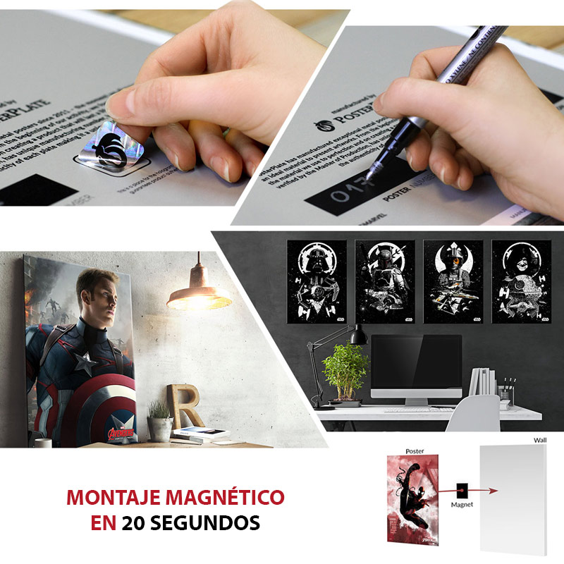 Espectacular Póster realizado en metal de DareDevil Leap of Faith The Devil of Hells Kitchen Collection, el Póster tiene un tamaño aproximado de 45 x 32 cm., decora tu espacio preferido con un toque futurista con este lienzo realizado en metal basado en la fantástica saga de Marvel. Este precioso poster incluye en la parte trasera el número de serie, firma y sello holográfico, lo que le hace una pieza única para los coleccionistas. Contiene un sencillo sistema de montaje magnético.