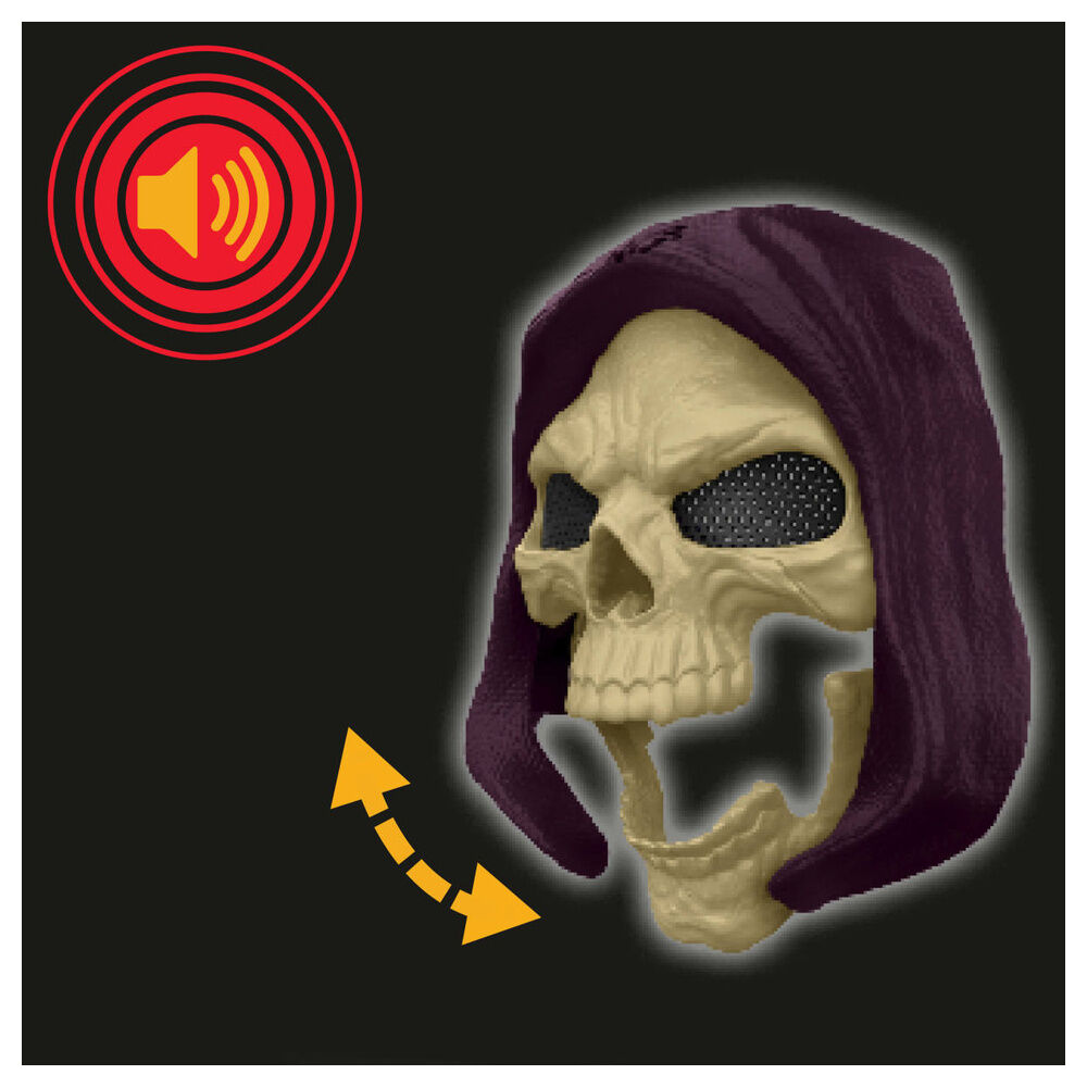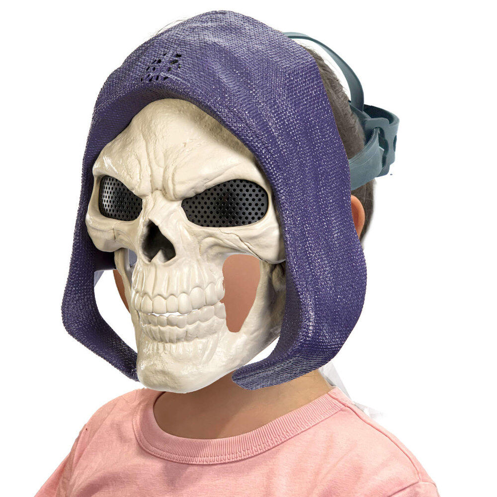 Basada en la película de acción real de 2026, esta máscara de Skeletor combina accesorio de rol y pieza coleccionable MOTU con mucho carácter visual. La estructura emplea plástico resistente tipo PVC, más ligero y manejable que una réplica en resina o metal. La textura de la capucha, el relieve óseo del rostro y las rejillas oscuras en los ojos aportan profundidad sin perder visibilidad. Con un tamaño aproximado de 22-25 cm de alto, encaja en uso infantil a partir de 6 años y en exposición sobre balda o soporte.