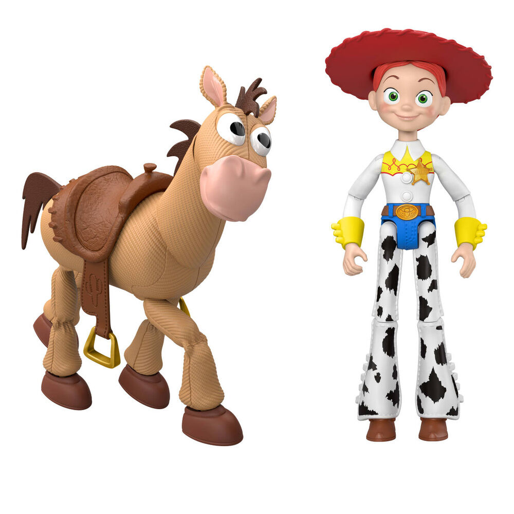 Cada figura está fabricada en plástico resistente tipo PVC, con acabados pintados que reproducen el traje de Jessie, la silla de montar de Perdigón y los rasgos expresivos de ambos personajes. La escala aproximada de 17,78 cm permite que las proporciones encajen entre sí, algo importante tanto para recrear escenas como para mantener una exposición coherente junto a otras figuras articuladas Toy Story 5.