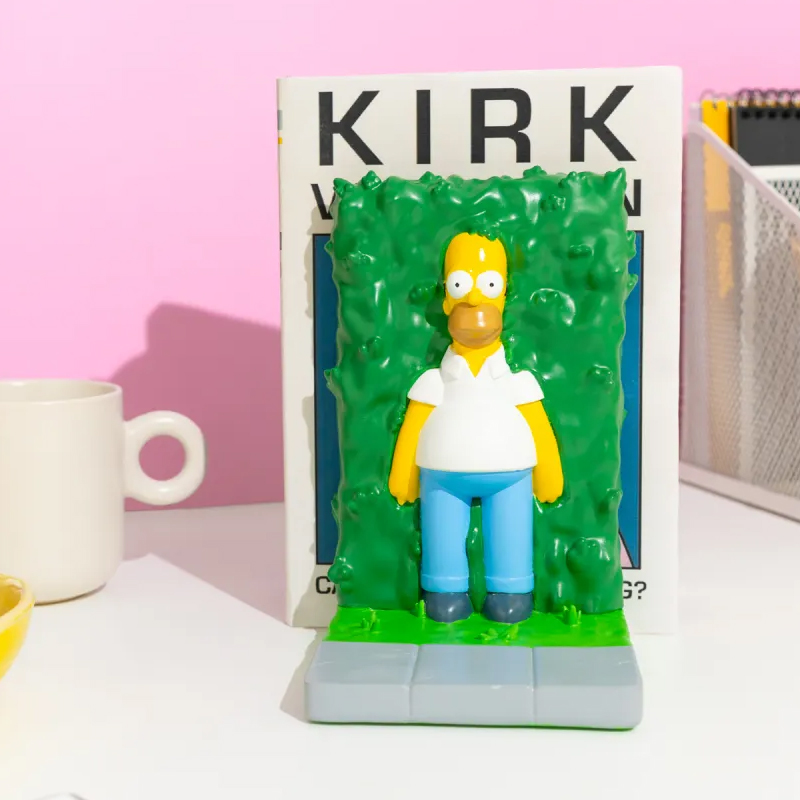 La escena más reconocible de la animación televisiva se convierte en un elemento decorativo con carácter propio gracias a este sujetalibros The Simpsons Homer Arbusto, una pieza que aporta humor, orden y diseño a cualquier estantería. Fabricado en resina de alta calidad, modelado en relieve y pintado a mano con gran fidelidad al personaje, este sujetalibros The Simpsons destaca por su acabado detallado y su presencia visual, convirtiendo una simple colección de libros en un espacio lleno de personalidad. Su formato de dos piezas permite colocarlo a ambos lados de los libros para mantenerlos firmes y bien organizados, al mismo tiempo que añade un toque decorativo inspirado en una de las series más influyentes de la historia del cine y la televisión. Con unas medidas aproximadas de 11,2 x 16,9 x 11 cm, encaja perfectamente en estanterías, escritorios o vitrinas, funcionando tanto como organizador práctico como como decoración The Simpsons para el hogar o la oficina. Este sujetalibros decorativo combina funcionalidad, durabilidad y un diseño icónico, pensado para quienes valoran los detalles, la calidad artesanal y los objetos con identidad propia que aportan valor real al espacio.