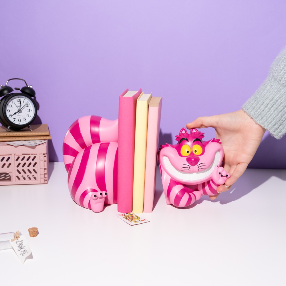 El sujetalibros Disney Alicia en el País de las Maravillas Gato Cheshire transforma cualquier estantería en una escena llena de color, fantasía y personalidad, aportando un toque decorativo original inspirado en uno de los personajes más carismáticos del cine clásico de animación. Este set de dos piezas está fabricado en resina de alta calidad, modelado en relieve y pintado a mano, lo que se traduce en acabados cuidados, expresiones definidas y un resultado visual que destaca incluso entre colecciones exigentes. Su diseño permite colocar cada pieza a ambos lados de los libros, manteniéndolos organizados con estabilidad y añadiendo un valor estético real, ideal tanto para bibliotecas domésticas como para estanterías temáticas de Disney. Gracias a sus medidas aproximadas de 12,2 × 13 × 12,4 cm y 12 × 15 × 15,6 cm, se adapta con facilidad a libros de distintos formatos sin ocupar espacio innecesario, convirtiéndose en un complemento funcional y decorativo a partes iguales. Este sujetalibros del Gato Cheshire no es solo un accesorio práctico, es una pieza decorativa con identidad propia, pensada para quienes buscan artículos de cine y animación con calidad, durabilidad y un diseño que transmite magia y carácter en cada detalle.