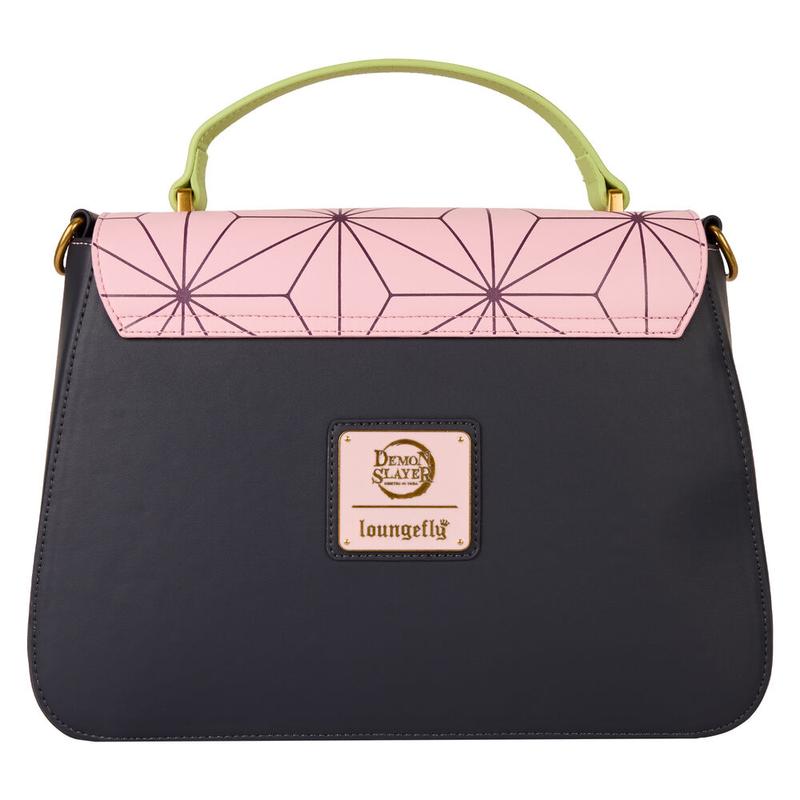 Un diseño inspirado en Nezuko Kamado de Demon Slayer: Kimetsu no Yaiba da vida a este bolso bandolera de Loungefly, cuyas medidas de 28,96 × 7,62 × 21,08 cm ofrecen la capacidad ideal para transportar objetos esenciales con un aire moderno y referencia directa a la protagonista. El cuero sintético de alta calidad garantiza resistencia al uso diario, mientras que el forro interior estampado con hojas de bambú y su cierre de solapa con imán evocan la mordaza característica de Nezuko. Su correa ajustable permite adaptarlo a cualquier estilo, y los detalles metálicos con el emblema de la serie añaden un toque de autenticidad que lo convierte en un imprescindible para los seguidores del anime.