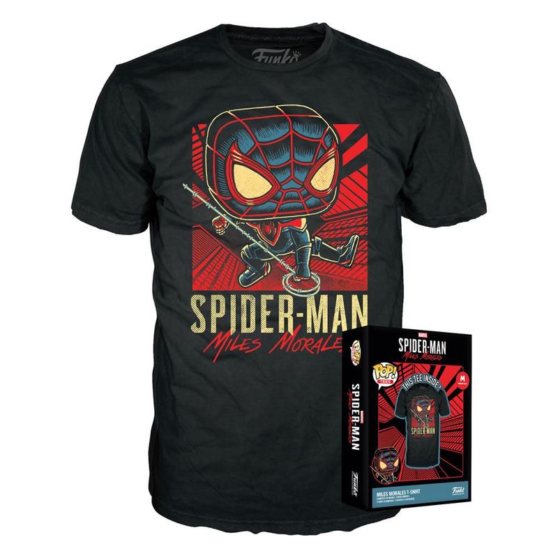 Disfruta con esta divertida camiseta de Miles Morales al estilo de Funko Pop. La camiseta está realizada en 100% algodón de alta calidad. Producto oficial. Camiseta de alta calidad. Miles Morales basado en el personaje ficticio que aparece en las historietas publicadas por Marvel Comics, como uno de los personajes conocidos como Spider-Man.
