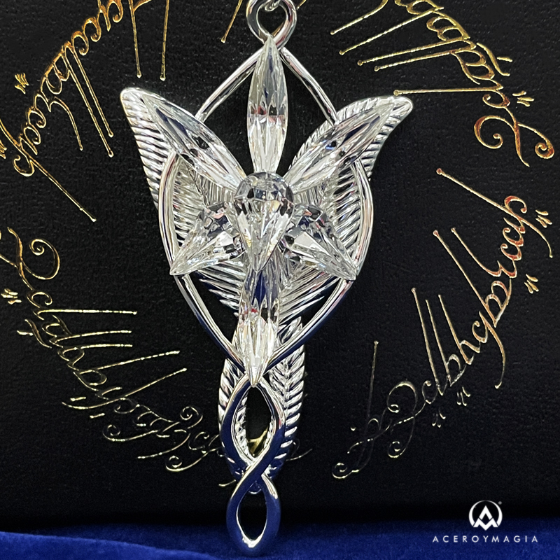 ¡Sé la envidia de todos con el deslumbrante colgante élfico de Arwen "Estrella del Atardecer"! Este collar es una réplica oficial de la trilogía de películas "El Señor de los Anillos" y es una pieza de joyería realmente especial. El colgante mide aproximadamente 6,30 cm y viene con una cadena plateada de 50 cm de longitud. Está hecho de bronce plateado y está incrustado con cristales de Strass que brillan como estrellas en el cielo. ¡Es el accesorio perfecto para cualquier ocasión especial! Viene en una cajita de cartón negra con el logotipo de "El Señor de los Anillos", ¡así que puedes guardarlo con seguridad cuando no lo estés usando! Este colgante élfico es un producto oficial de Noble Collection, ¡así que puedes estar seguro de que estás obteniendo la mejor calidad. ¡Añade este collar espectacular a tu colección hoy mismo!