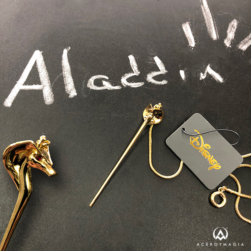 Colgante del Bastón de Jafar basado en el clásico Aladdin de Disney. Este precioso colgante está realizado en titanio con un plateado de Oro Amarillo 14k con un acabado de alto brillo y cristales Swarovski®, El colgante tiene una altura aproximada de 60 mm. y el collar tiene una longitud aproximada de 45 cm. Esta preciosa joya dará un toque simpático para tu día a día. Producto oficial Disney. Un poco de cuidado hace mucho para mantener tus joyas en óptimas condiciones, evitar toda exposición a la humedad, los perfumes, las lociones y los productos químicos.