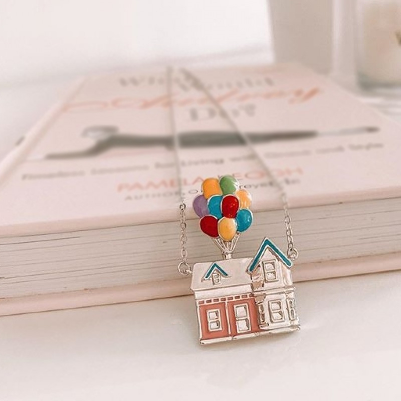 Precioso collar de la Casa con Globos de Carl Fredricksen inspirado en el clásico de Pixar UP. Este precioso collar está chapado en oro blanco de 14kt con un colgante que tiene el diseño de la famosa casa de Carl Fredricksen. El colgante mide aproximadamente 2,5 x 2,5 cm. La cadena mide aproximadamente 40 cm con un extensor de 6 cm. Un poco de cuidado hace mucho para mantener tus joyas en óptimas condiciones, evitar toda exposición a la humedad, los perfumes, las lociones y los productos químicos.