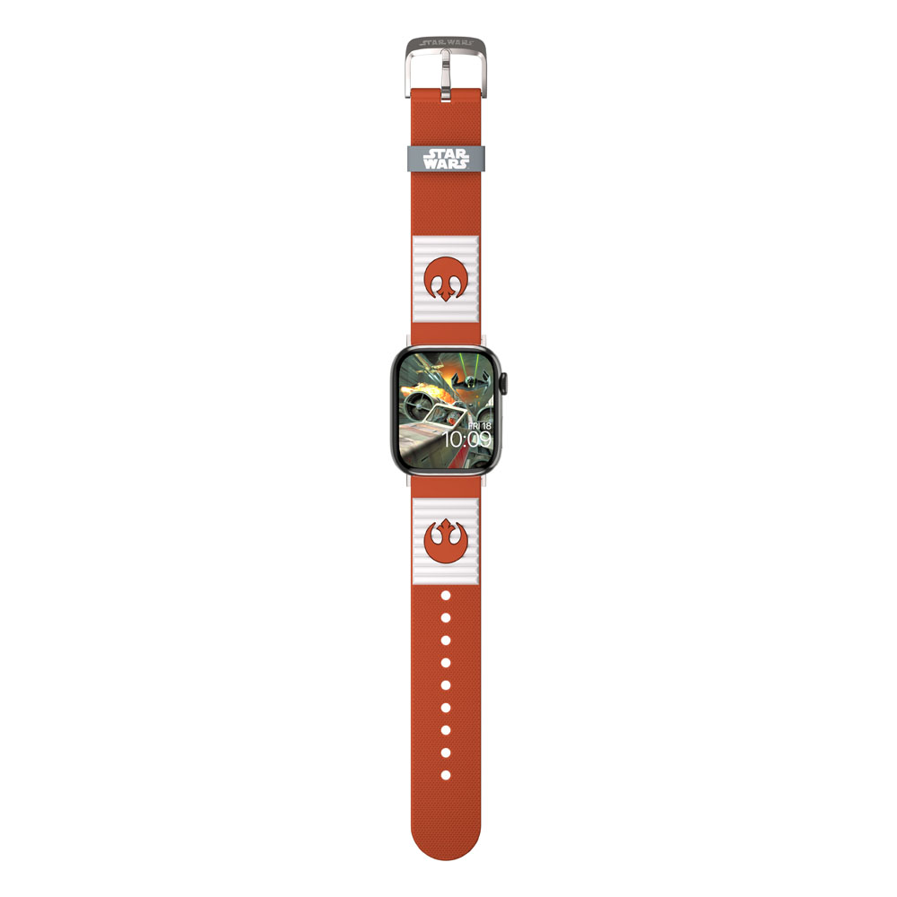 ¡Conviértete en parte de la Rebel Squadron con esta smartwatch con correa de Star Wars! Oficialmente licenciado y hecho de silicona de alta calidad, es adecuado para todos los modelos de Apple Watch y algunos relojes Android. La correa se ajusta a un rango de muñeca de 13-22 cm, lo que se adapta a la mayoría de tamaños de muñeca, y cuenta con hebilla de acero inoxidable y dos juegos de conectores (uno para grandes y otro para pequeños tamaños de Apple Watch). También incluye un pin de reloj estándar de 22 mm con mecanismo de cambio fácil para una eliminación rápida. Además, encontrarás un código QR en la caja para acceder a contenido digital exclusivo y más de 20 temas de pantalla de reloj. Apple Watch no incluido. La correa es resistente al sudor y los rayos UV, hecha de silicona de alta calidad y resistente a la rotura. Las correas Moby Fox son compatibles con todos los modelos actuales de Apple Watch (Series 1, 2, 3, 4, 5, 6, 7, 8, SE y Ultra) y funcionan con Apple Watches grandes y pequeños (38/40 mm y 42/44 mm) de forma inmediata, y cualquier smartwatch basado en Android con un pin de 22 mm. Cada correa incluye acceso a contenido digital para tu Apple Watch, llevando tu experiencia con wearables a un nivel completamente nuevo. Simplemente descarga la aplicación MobyFace (actualmente exclusiva para iOS), luego escanea el código QR incluido en la caja desde la aplicación MobyFace. Encuentra el código QR en el folleto de garantía, ubicado debajo del embalaje de espuma donde vino tu correa, ¡levanta la cinta negra dentro de la caja para encontrarlo fácilmente! La correa está diseñada para un uso intensivo y se pretende que se use las 24 horas del día, los 7 días de la semana. Es inodora, resistente al sudor/rayos UV y al clima. Es muy resistente y se puede limpiar con agua y jabón (encontrarás más instrucciones en la caja). ¡Asegúrate siempre de haber asegurado los conectores y los pasadores de manera segura antes de usarla!