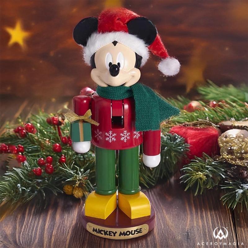 Figura de Mickey Mouse basado en el popular personaje de Walt Disney, esta vez tenemos a Mickey lleno de regalos como si fuera un cascanueces de Navidad. Esta preciosa figura está realizada en resina y tiene una altura aproximada de 25 cm. Este cascanueces es un complemento divertido y único para cualquier decoración navideña. Mickey viene con un motón de regalos en sus manos. El regalo perfecto para fans de Disney y decorar tu casa en Navidad.