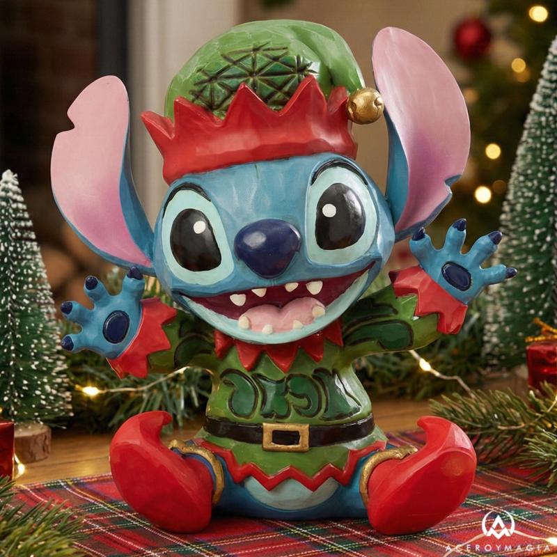 La Navidad más divertida y expresiva cobra vida en una pieza pequeña en tamaño pero enorme en carácter y encanto. Esta figura Stitch Navidad representa al carismático alienígena convertido en ayudante de Santa, vestido como un elfo navideño y rebosante de energía positiva. Su expresión alegre, sus grandes orejas abiertas y su postura desenfadada transmiten cercanía y buen humor, convirtiéndola en una figura ideal para aportar un toque desenfadado a la decoración navideña. El diseño artesanal de Jim Shore combina el estilo folk art con acabados pintados a mano, logrando una figura Disney Jim Shore llena de color, textura y personalidad que destaca dentro de cualquier colección. Con unas dimensiones compactas de 9,5 cm de alto, 8 cm de largo y 5,5 cm de ancho, esta figura Stitch mini es perfecta para estanterías, escritorios o composiciones decorativas donde cada detalle cuenta. Más allá de su tamaño, se trata de una figura Stitch coleccionable pensada para quienes valoran la calidad, el diseño cuidado y la emoción que despiertan los personajes Disney en Navidad, siendo también una excelente opción como regalo Disney Navidad original y con carácter propio dentro de una cuidada colección Disney Navidad.